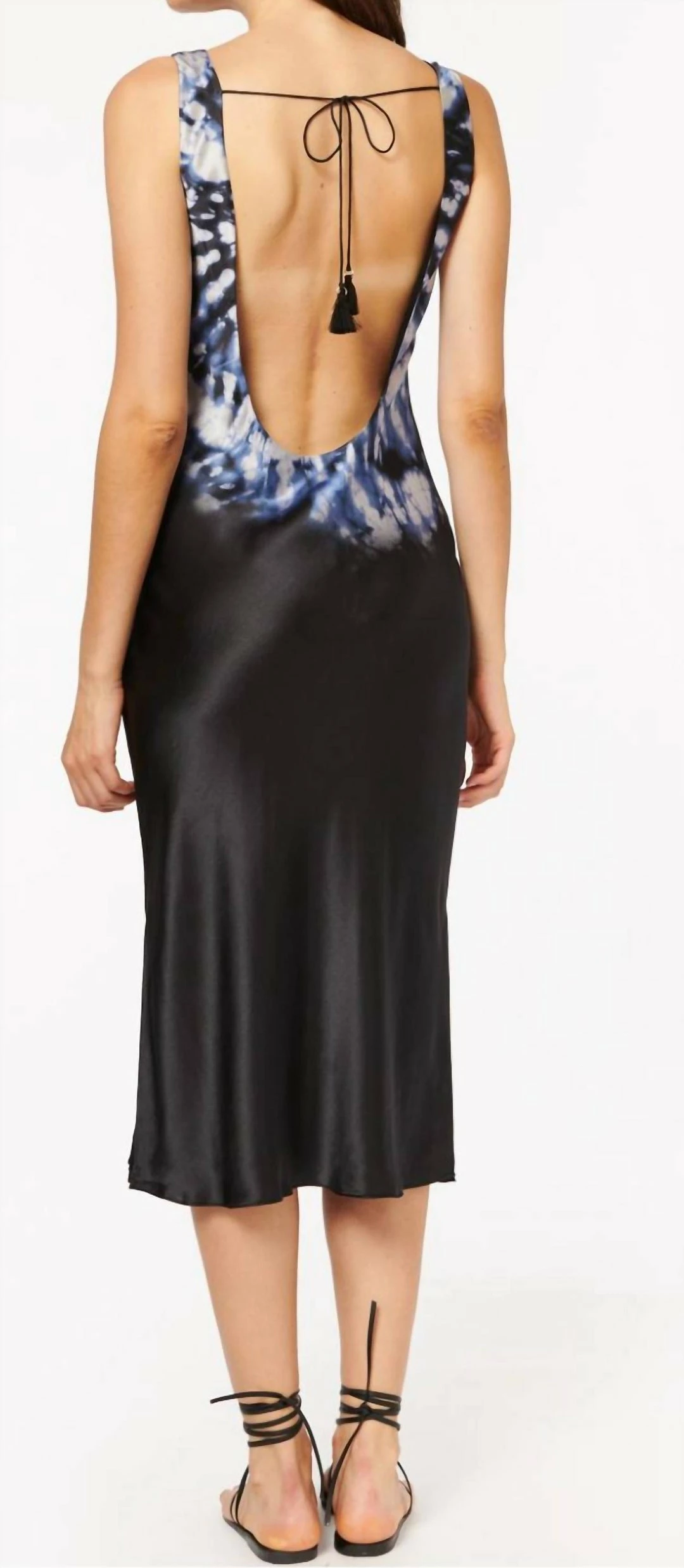 ThisΓΒ midi length dressΓΒ style features a scoop front and back neckline with a back tassel tie. Printed in our Dark Tie Dye, with cobalt and pastel blues accenting the top neckline.ΓΒ The Evelyn Dress is fully lined.ΓΒ Γ’β¬Β’ΓΒ 100% SilkΓ’β¬Β’ Dry Clean & Steam OnlyΓ’β¬Β’ΓΒ ImportedΓ’β¬Β’ΓΒ True to Size