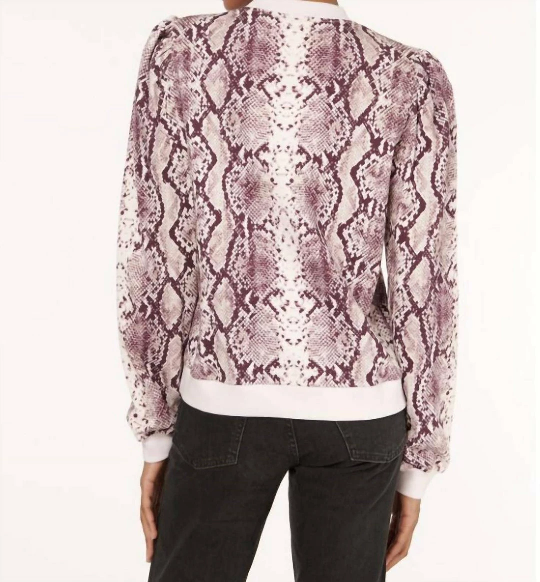 Roberta brings you comfort and ease while maintaining its role as an elevated wardrobe staple. This crewneck sweatshirt style features a puff shoulder full length sleeve with an elasticated hem. Now in our Berry Snake, aΓΒ graphic and boldΓΒ burgundy animal print.ΓΒ Dressed up or down, this cotton style isΓΒ sure to start and complete your look.ΓΒ Γ’β¬Β’ΓΒ 100% CottonΓ’β¬Β’ Machine WashableΓΒ Γ’β¬Β’ ImportedΓ’β¬Β’ΓΒ True to SizeΓ’β¬Β’ΓΒ Relaxed Fit